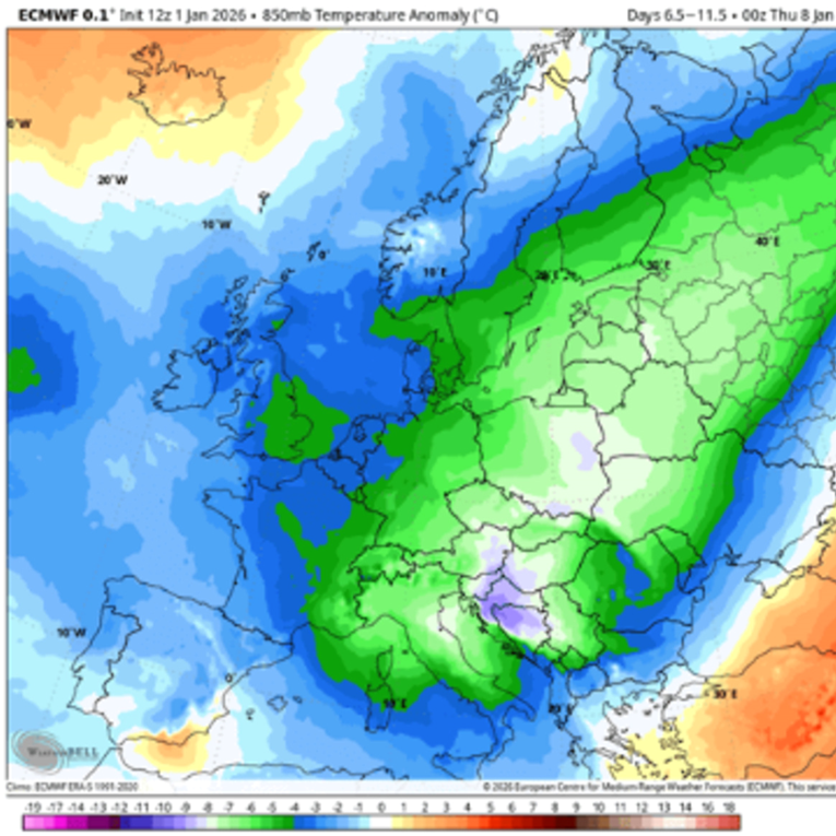 Истовремено и над Европа се очекува ширење на постуден воздух под влијание на северно струење и понизок притисок. Иако станува збор за долгорочна прогноза, нејзината веродостојност ја поткрепува фактот дека ваквиот образец е директна последица на настанот на стратосферско затоплување.
