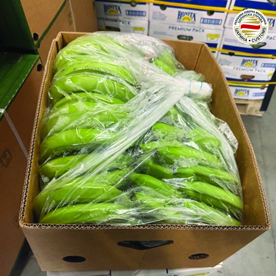 Царински службеници од царинарница Гевгелија спречија обиди за криумчарење 2,3 тона банани и 400 литри маслиново масло. Обидот за криумчарење банани е откриен на царинска испостава Гевгелија при контрола на пратка пријавена за увозно царинење, при што е откриено дека поголема количина на банани не се опфатени со царинските документи, со што увозникот се обидел да избегне плаќање давачки. Обидот за шверц на 400 литри маслиново масло е откриен на влез граничен премин Дојран при контрола на возило управувано од германски државјанин.