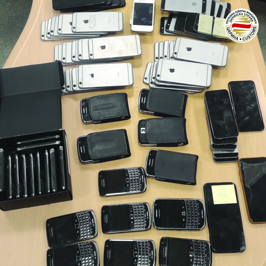 На граничниот премин Деве Баир на излез од државата царинските службеници открија 103 половни „Ајфон“ и „Блекбери“ телефони што бугарски државјанин сакал да ги криумчари. Телефоните се откриени при претрес на автомобилот со кој патувал во кутија покриена со јакна и ранец.
