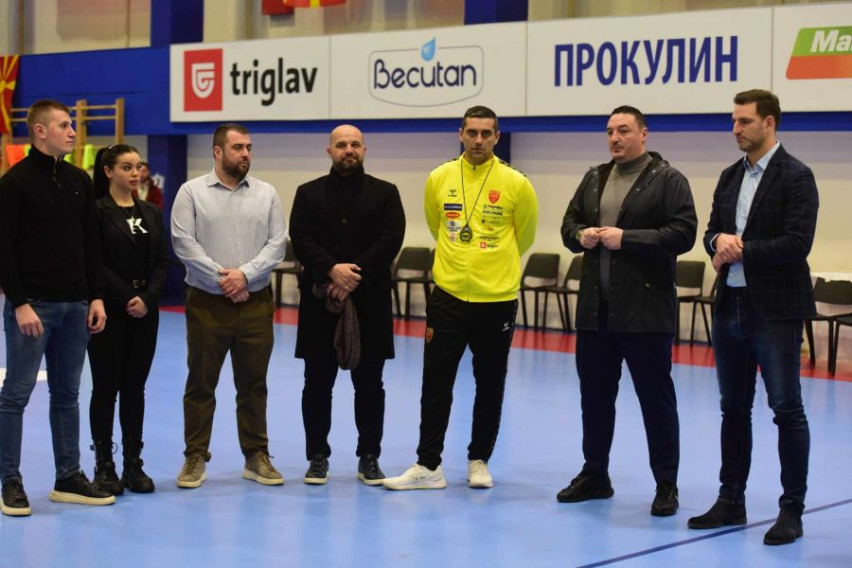 Кирил Лазаров и неговите помошници го водеа завршниот тренинг во Скопје, но нашиот национален тим имаше посета и од поранешниот македонски голман и актуелен Министер за спорт, Борко Ристовски.