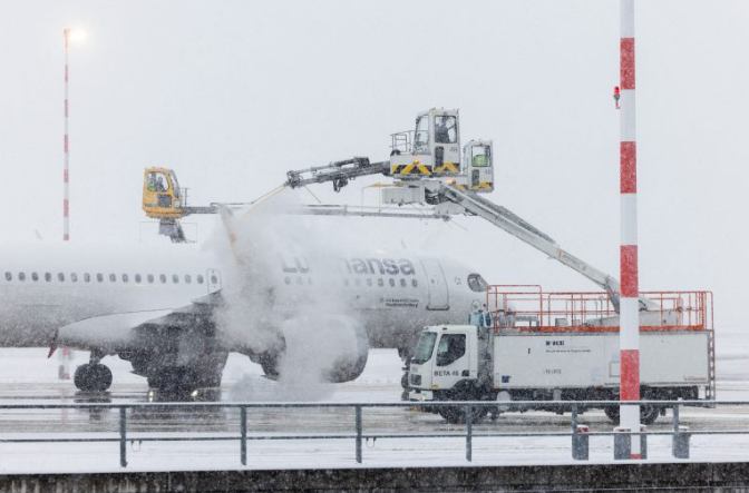 Во Брисел дел од летовите се откажани, а одмрзнувањето на пистите и крилјата на авионите предизвика доцнења.