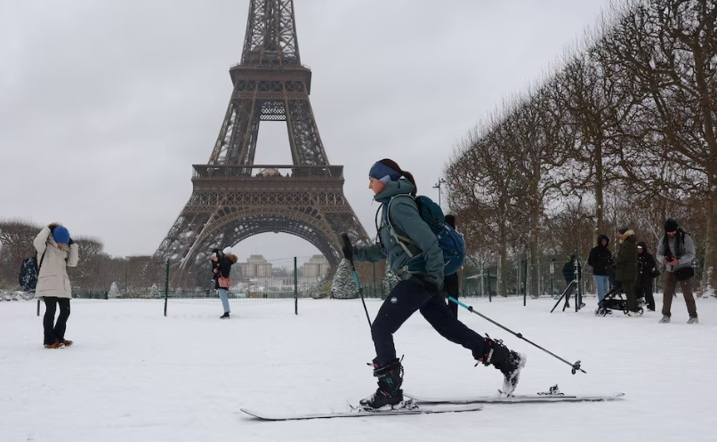 Обилни снежни врнежи ја зафатија париската област во среда наутро, а југот на Велика Британија се очекува да биде најпогоден во четврток и петок. Предупредувања за студено време во среда покрија големи делови од Франција и Британија.