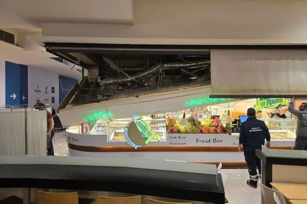 Во трговскиот центар Космос во Солун се урнал таванот на еден локал на првиот кат, во зоната каде што се наоѓаат рестораните и објектите за брза храна, и тоа во момент кога таму имало голем број луѓе.