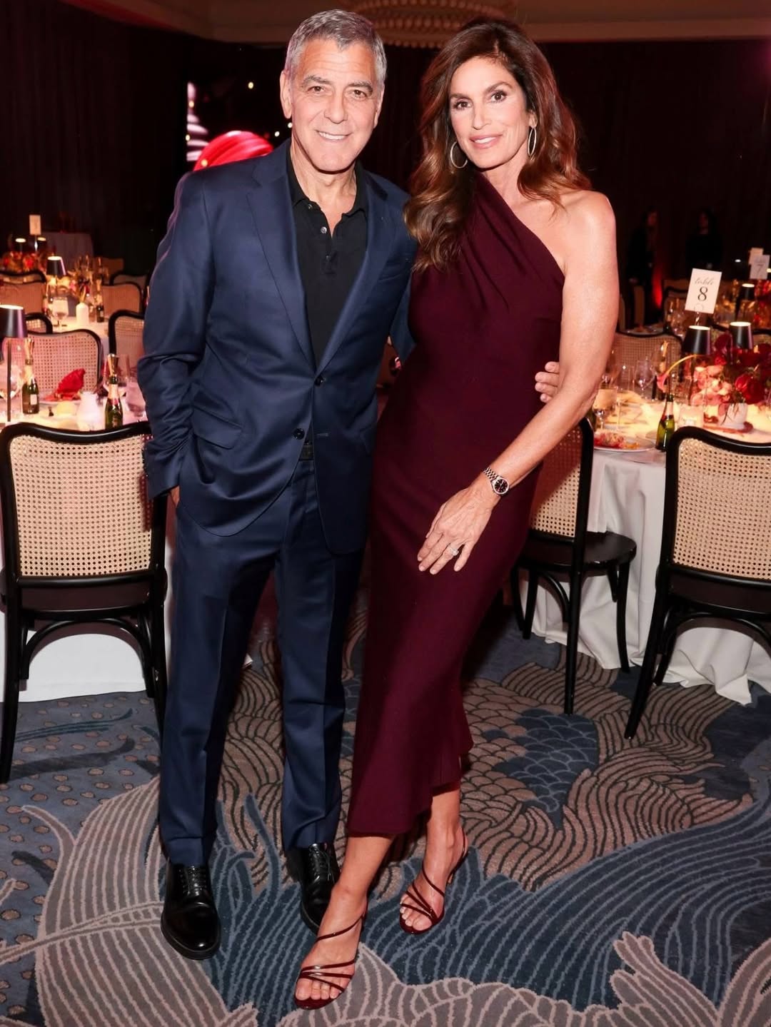 Слична улога имаше и актерот Џорџ Клуни, кој ја презеде наградата со која беше оддадена почит на покојниот Џорџо Армани, кој му беше голем пријател.
