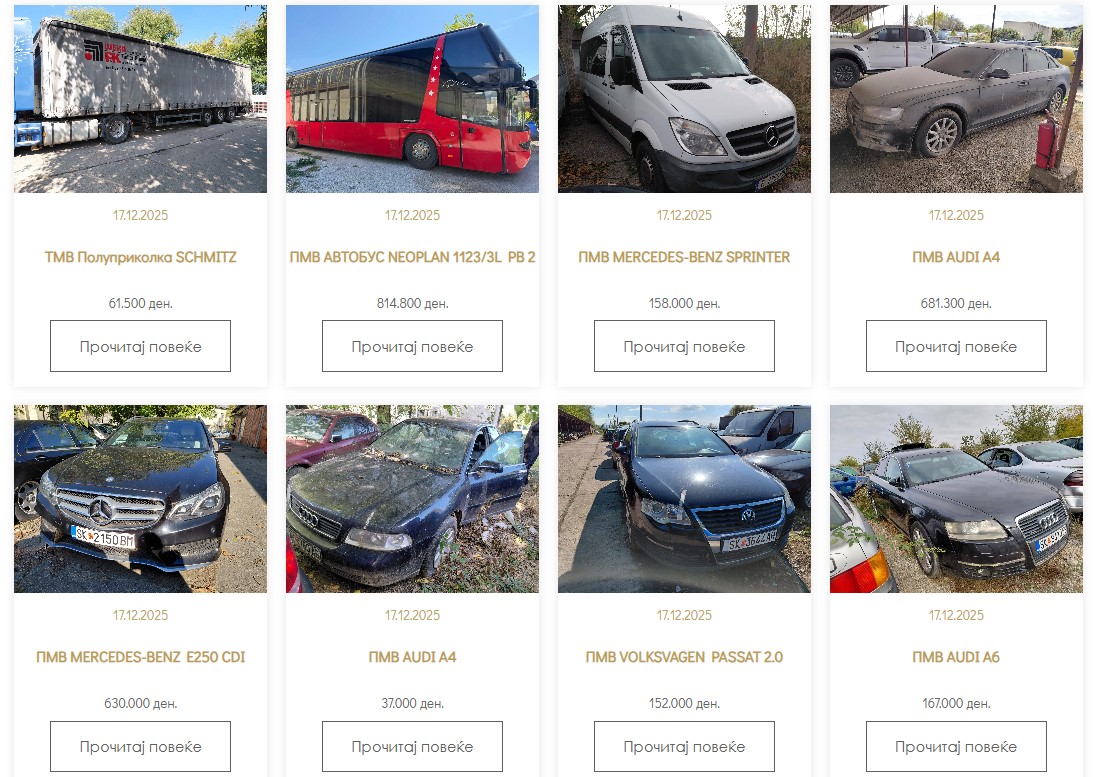 На веб-страницата на Агенцијата е наведено дека на продажба биле ставени вкупно девет возила – осум автомобили и една полуприколка. За сите возила била понудена повисока цена од почетната, што сугерира дека се продадени, пренесува „Фактор“.
