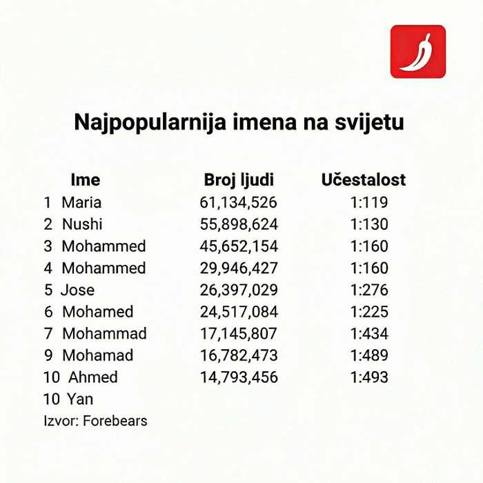 На прв поглед, листата на најпопуларни имиња изгледа како уште еден интересен податок на интернет. Но, кога ќе се загребе под површината, таа открива многу повеќе од мода во именувањето – зборува за демографија, историја, религија и огромната сила на бројките.