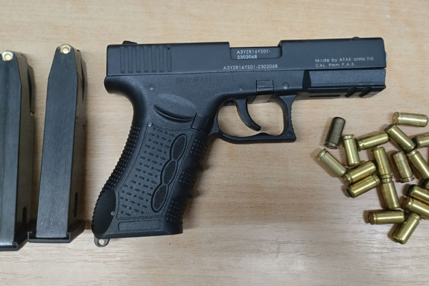 Полициските службеници на булеварот „Борис Трајковски“ запреле патничко возило „шкода“ со скопски регистарски ознаки, управувано од А.Г. и при преглед пронајден е пиштол со две рамки за пиштолот со 41 куршуми.