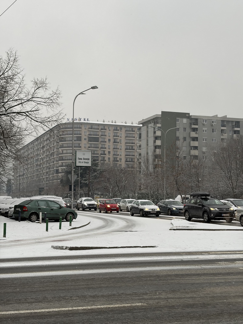 На повеќе локации во градот веќе има насобрана снежна покривка, поради што сообраќајот се одвива со забавено темпо. Надлежните служби апелираат до возачите да бидат особено внимателни, да ја прилагодат брзината на условите на патот и задолжително да користат зимска опрема. Се препорачува избегнување на ненадејни маневри и одржување на поголемо растојание меѓу возилата.