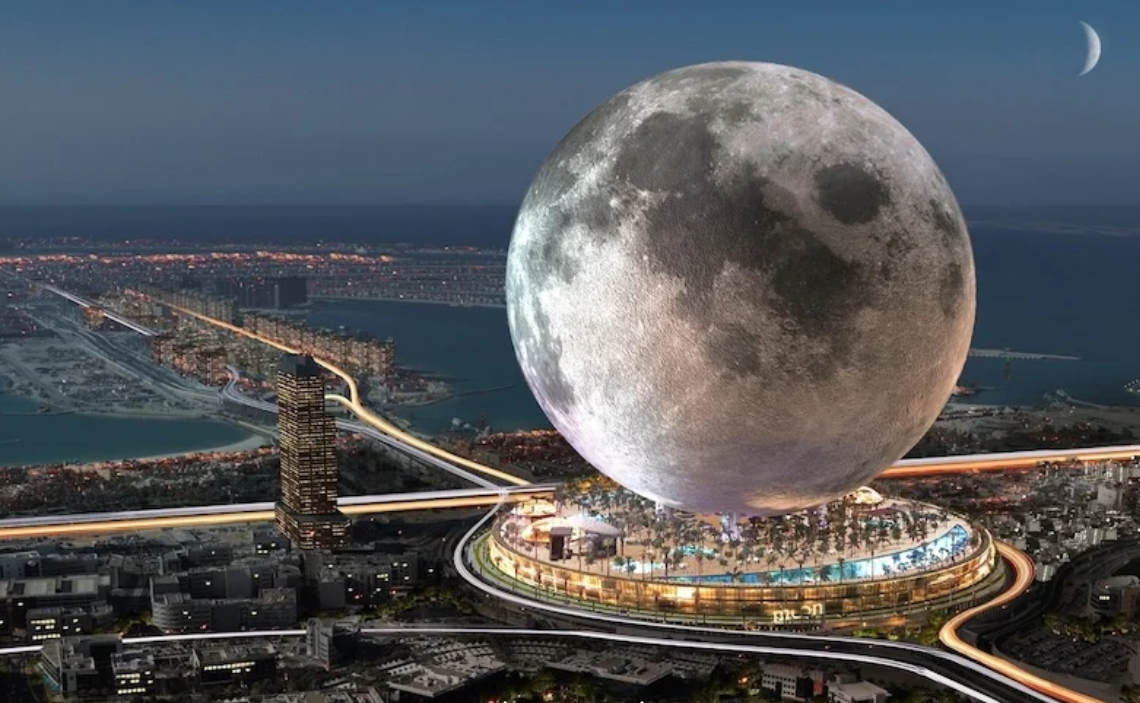 Дубаи повторно ги поместува границите на можното со амбициозен проект – изградба на џиновска структура во облик на Месечина. Оваа мегаструктура, висока над 200 метри, ќе понуди луксузни хотели, научни центри и уникатни туристички искуства што симулираат вистинско „патување во вселената“. Посетителите ќе можат да прошетаат по лунарната површина и да ја доживеат гравитацијата на Месечината, сè без да го напуштат градот. Проектот има за цел да стане најголемата туристичка атракција на 21. век и нов симбол на визијата на Дубаи за иднината.