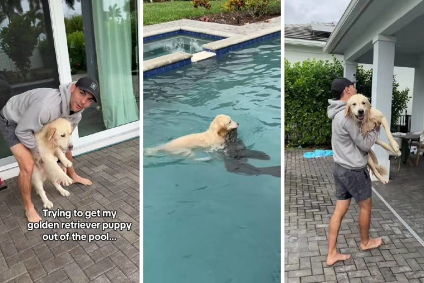 Видео од златниот ретривер Бауер како упорно бега за да скокне во базен стана хит на ТикТок, собирајќи милиони прегледи. Видеото го прикажува сопственикот како се обидува да го држи подалеку од водата, додека дополнителен хаос создава друг ретривер, Маверик, кој зграпчува пешкир и го тегне, пишува „PetHelpful“.