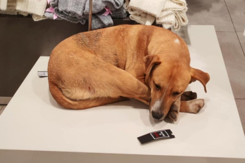 Фотографија од куче кое се склопчило и спие во продавницата за облека „New Yorker“ за да се заштити од студот предизвика бројни позитивни реакции на социјалните мрежи. Сцената на својата страница ја споделило здружението „Хера“, пофалувајќи го гестот на вработените.