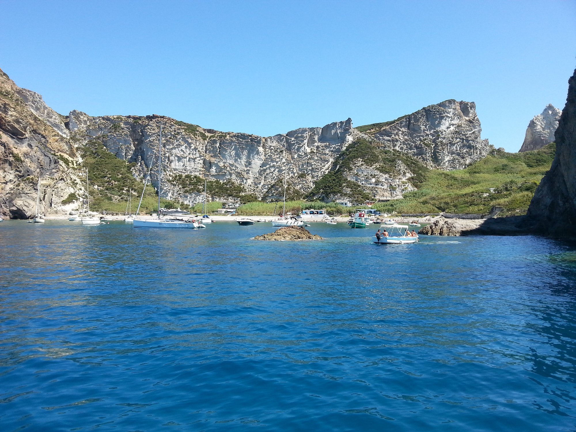Поголемиот дел од деновите, единствениот начин да се стигне до островот е со мал чамец од Понте, оддалечен пет милји преку Тиренското Море.