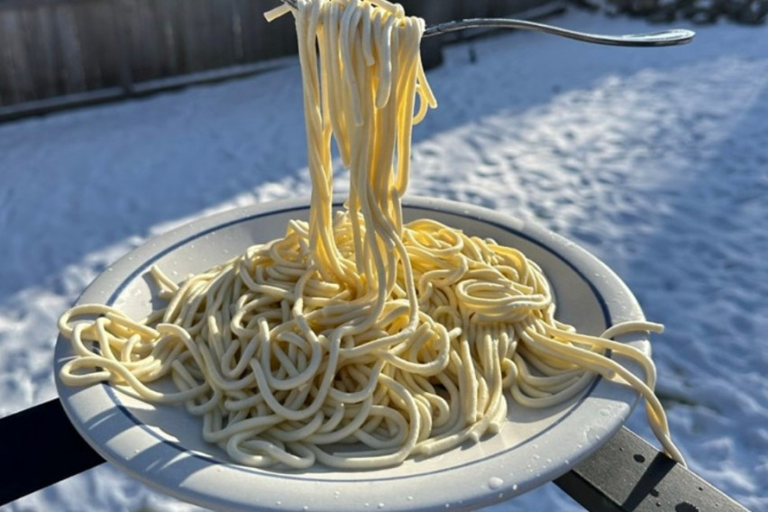 [ФОТО/ВИДЕО] Во САД е – 29°C: Шпагетите буквално замрзнале во чинија