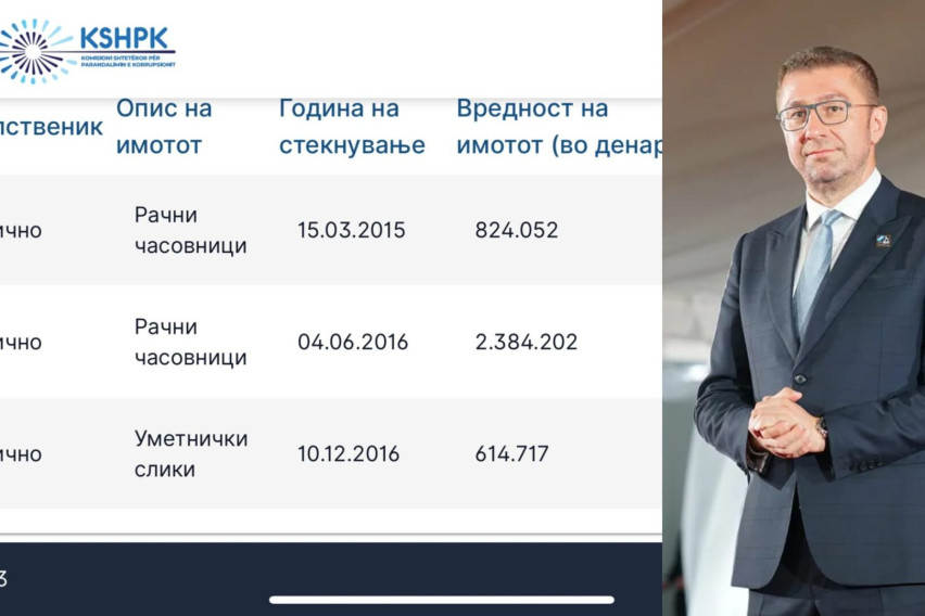Согласно анкетниот лист за имотната состојба, Мицкоски има колекција од часовници вредни 60.000 евра.