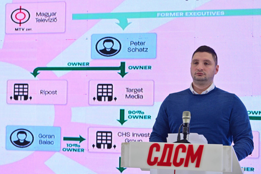 На прес-конференција, членот на Извршниот одбор на СДСМ, Јон Фрчкоски, изјави дека унгарски компании и поранешни високи функционери од унгарскиот јавен сервис систематски купувале контролни удели во македонски телевизии и портали. Како примери ги наведе фирмите „Target Media“ и „Adinamic Media“, како и медиумските групации поврзани со Алфа ТВ и повеќе онлајн портали.