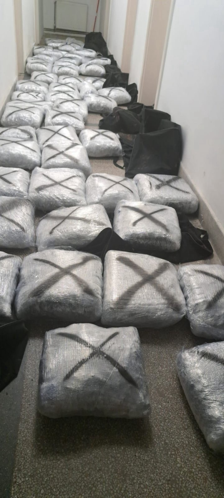 При извршен преглед на задната клупа и багажниот простор на возилото, биле пронајдени осум торби со вкупно 50 пакувања марихуана. По извршеното вештачење во Одделот за форензички испитувања при МВР, утврдено е дека станува збор за околу 150 килограми марихуана.