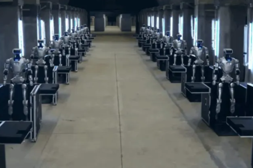 Компанијата со седиште во Шенжен објави видео на кое се гледаат 18 хуманоидни роботи „Oli“ како автономно излегуваат од транспортни сандаци, се движат во формација и изведуваат координирана рутина – без никаква човечка интервенција.
