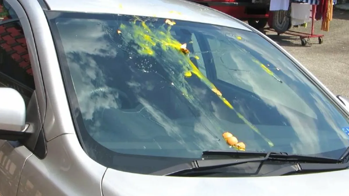 Најважното правило е: не излегувајте веднаш од автомобилот. Ако јајце удри во стаклото, не користете бришачи бидејќи само ќе ја влошите ситуацијата.