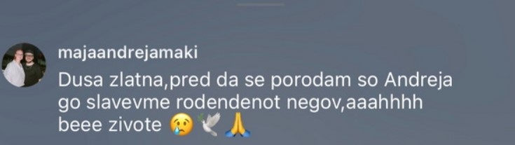 „Душа златна, пред да се породам со Андреја го славевме неговиот роденден. Ах, бре животе!“, напиша таа.