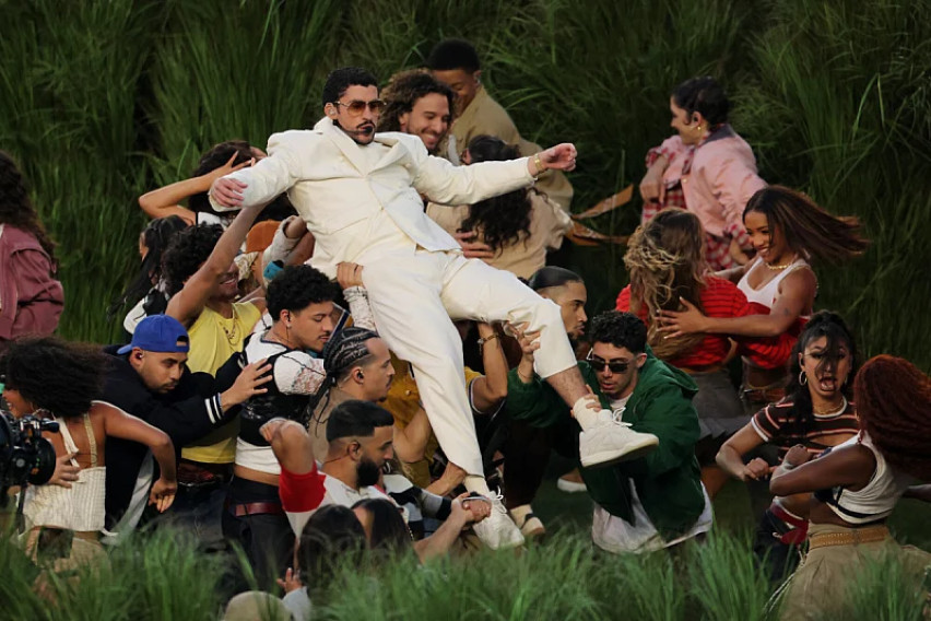 Овој 31-годишен пејач донесе латино енергија и свои корени на една од најголемите светски сцени, изведувајќи песни како „NUEVAYoL“, „DtMF“ и „EoO“.