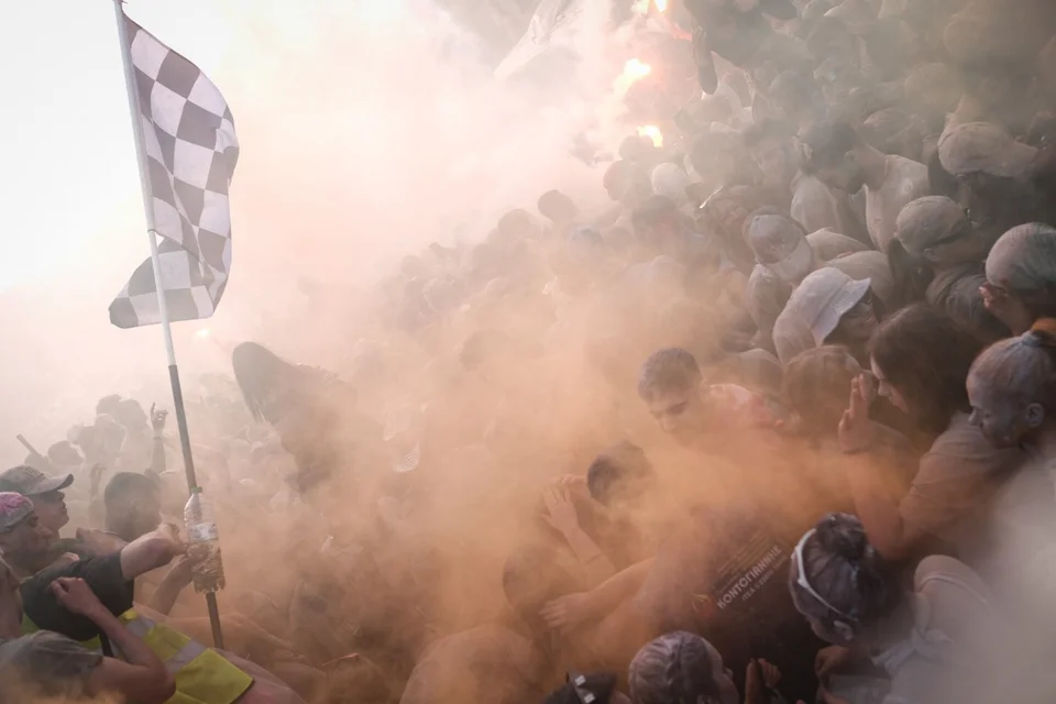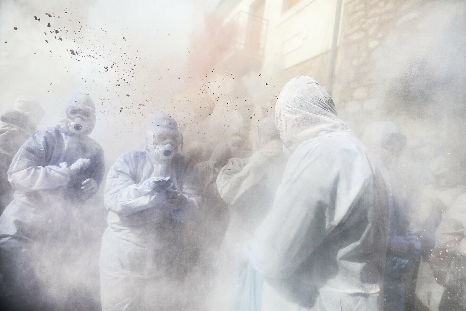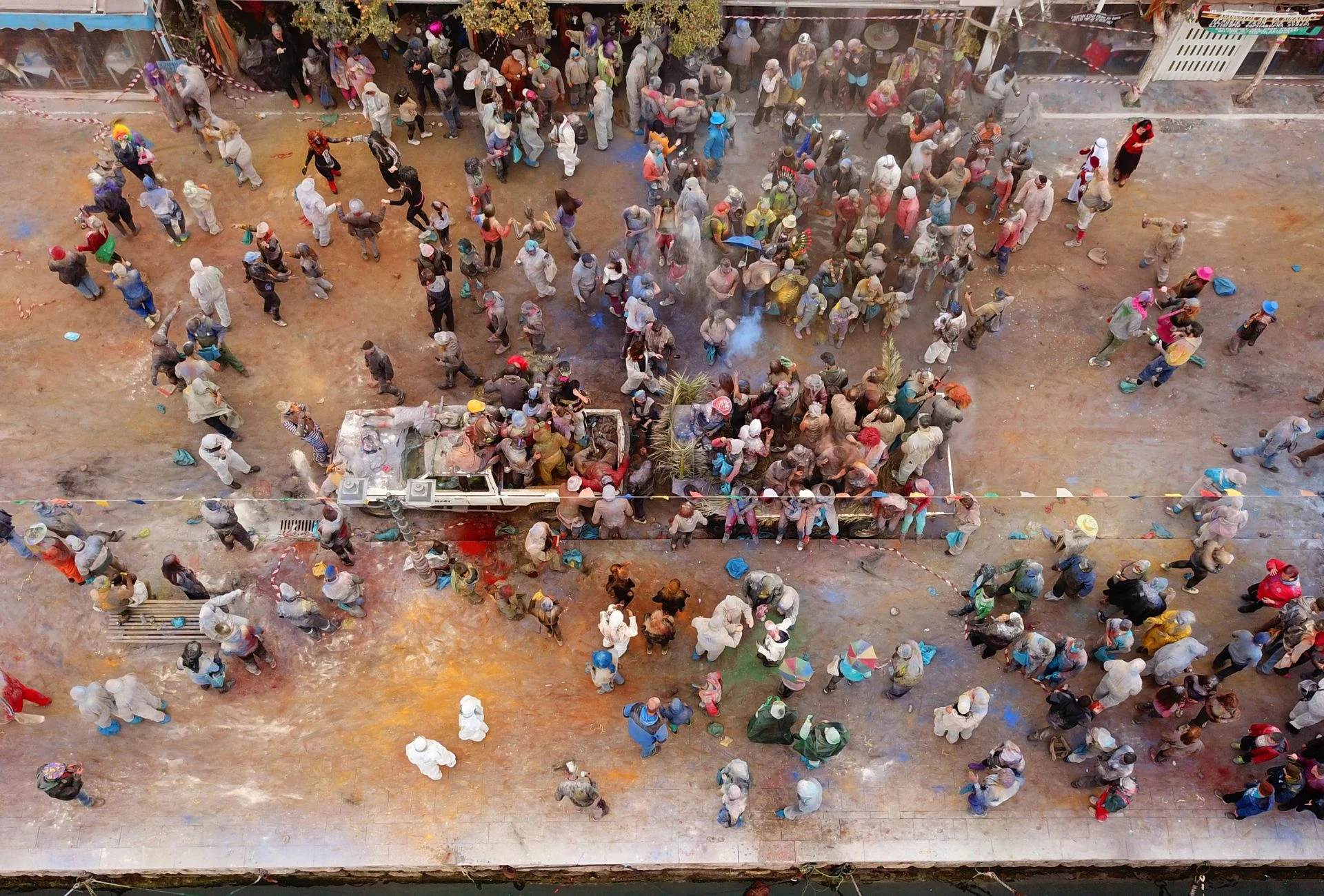 Градот буквално исчезнува во облак од брашно обоено во различни бои