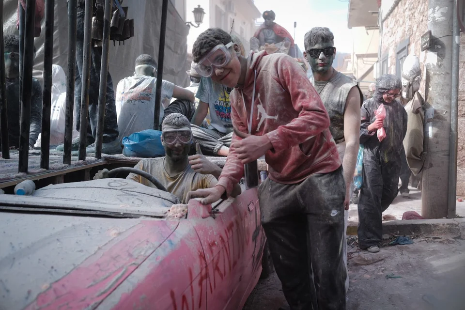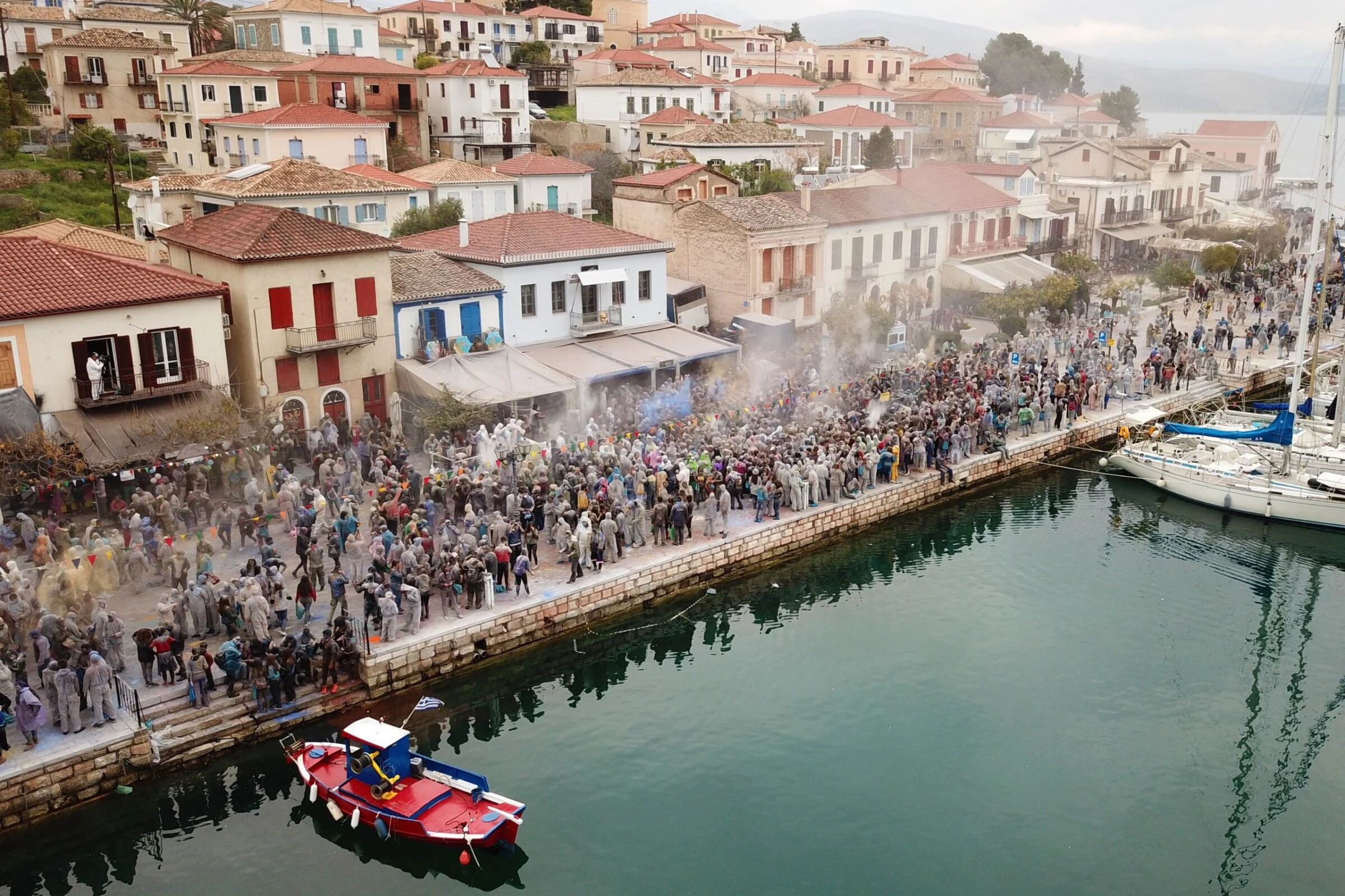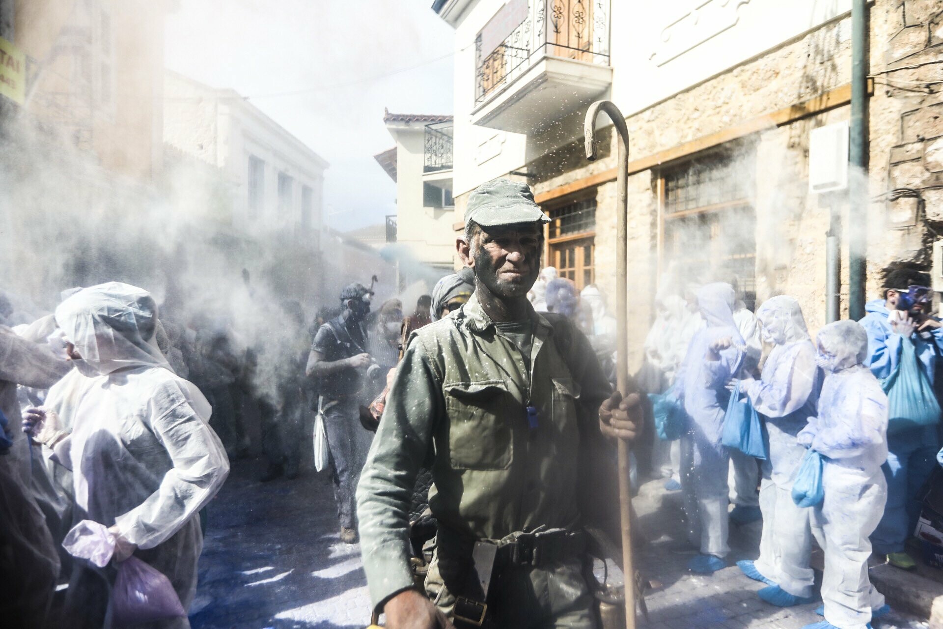 На последниот ден од покладниот период, кој во Грција се нарекува Розов понеделник, улиците на Галаксиди ќе исчезнат под слоеви брашно, а сите луѓе и сите згради ќе бидат обвиени во облак од бои, прашина и смеа.