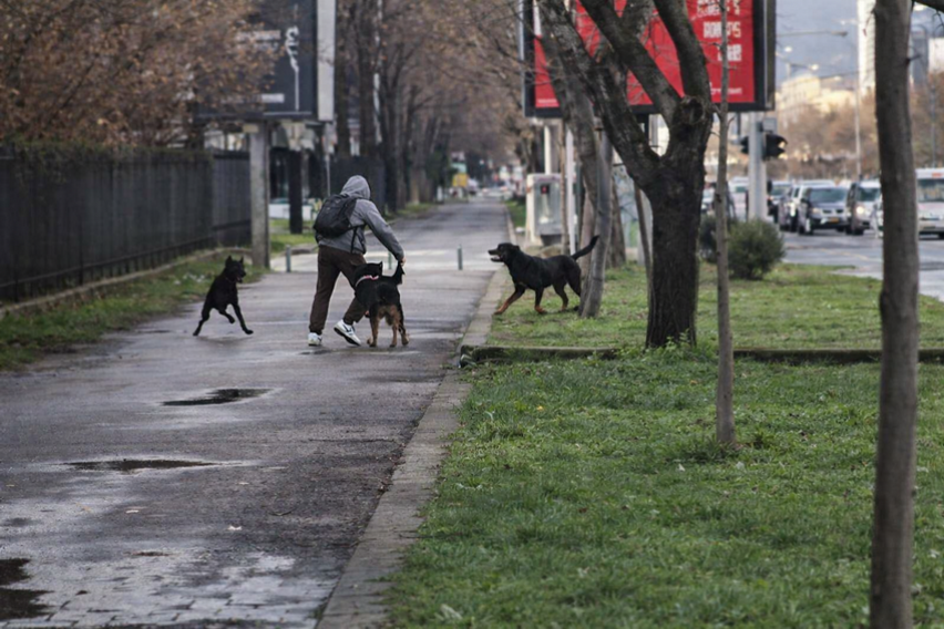 [ВИДЕО] Маж бега од глутница кучиња во Карпош 4, жителите стравуваат за безбедноста