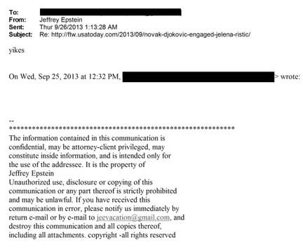 Осудуваниот сексуален престапник Џефри Епстин во една прилика реагирал и на веста за веридбата на Новак Ѓоковиќ и неговата сегашна сопруга Јелена, па испратил шифрирана порака до непозната личност, а причината поради која го сторил тоа ќе остане вечна мистерија.