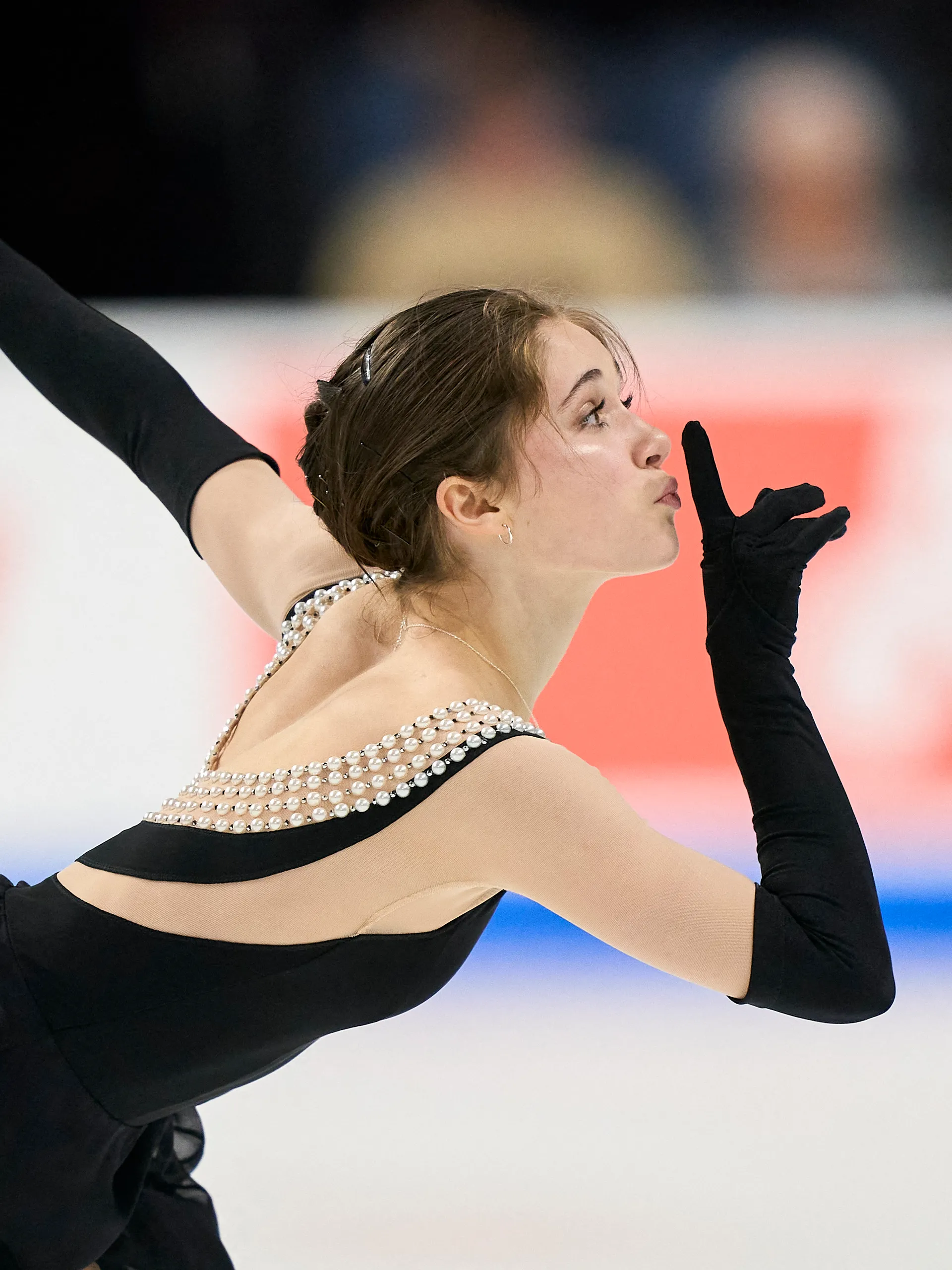 Таа естетика Левито ја пренела на мраз со помош на костимографката Лиса Мекинон: црн фустан од растегливо кадифе скроен да ја следи линијата на телото но и да овозможи целосна техничка изведба и пируета.