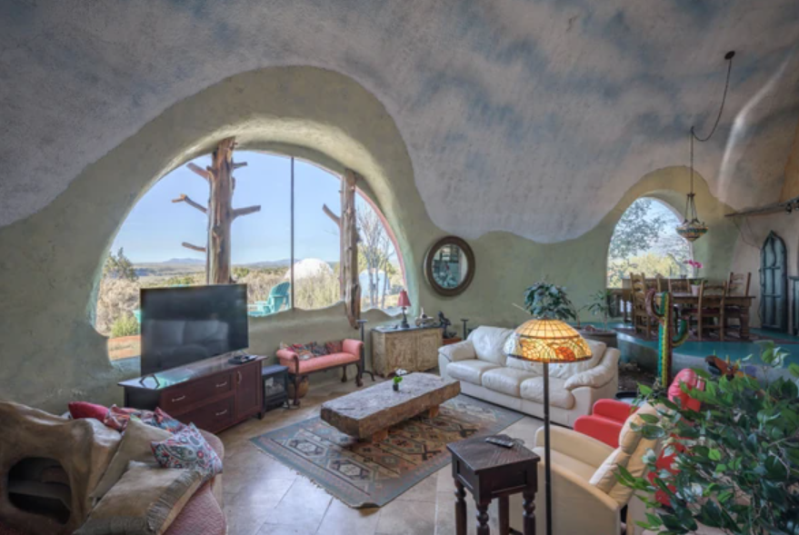 Сместена три километри северно од Таос, оваа недвижнина од 1980 години изгледа како да излегла од филмскиот сет „Војна на ѕвездите“, но истовремено нуди комфор и луксуз на модерен дом.