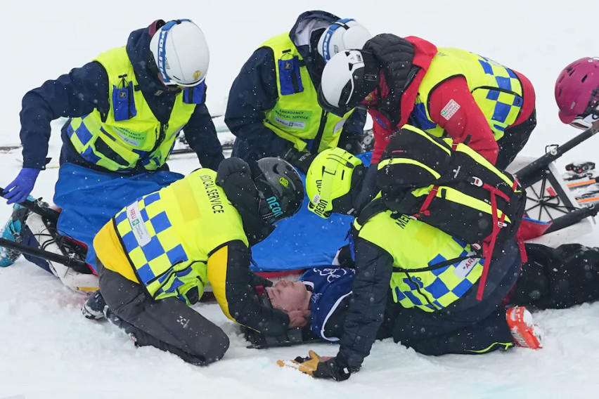 Репрезентативецот на Нов Зеланд, Финли Мелвил Ивс, главен фаворит во дисциплината скијање во слободен стил, беше изнесен од снегот на носилка во петокот по тежок пад за време на неговиот втор настап во квалификациите на ЗОИ во Милано и Кортина.