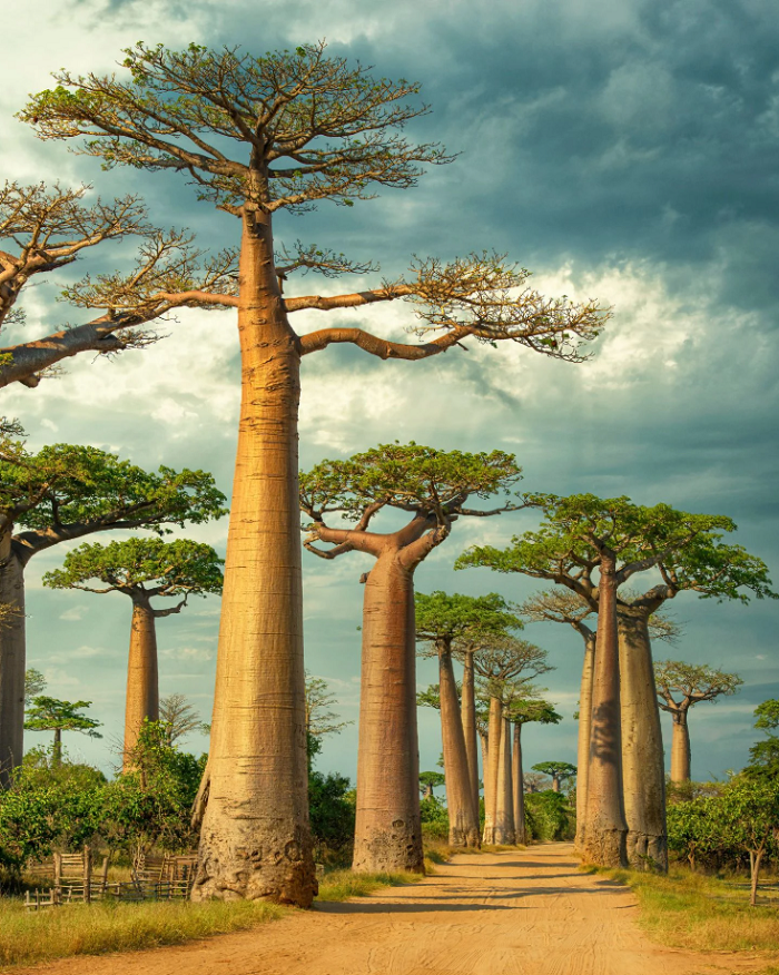 Овие баобаби, ендемични за Мадагаскар, достигнуваат височина од околу 30 метри и можат да живеат повеќе од 800 години (некои дури велат и до 1000). Нивните стебла се масивни, со пречник и до 11 метри, специфични по тоа што можат да складираат големи количини вода. Така, всушност, дрвјата се приспособиле за преживување во сушната и тропска клима на западниот дел од островот.