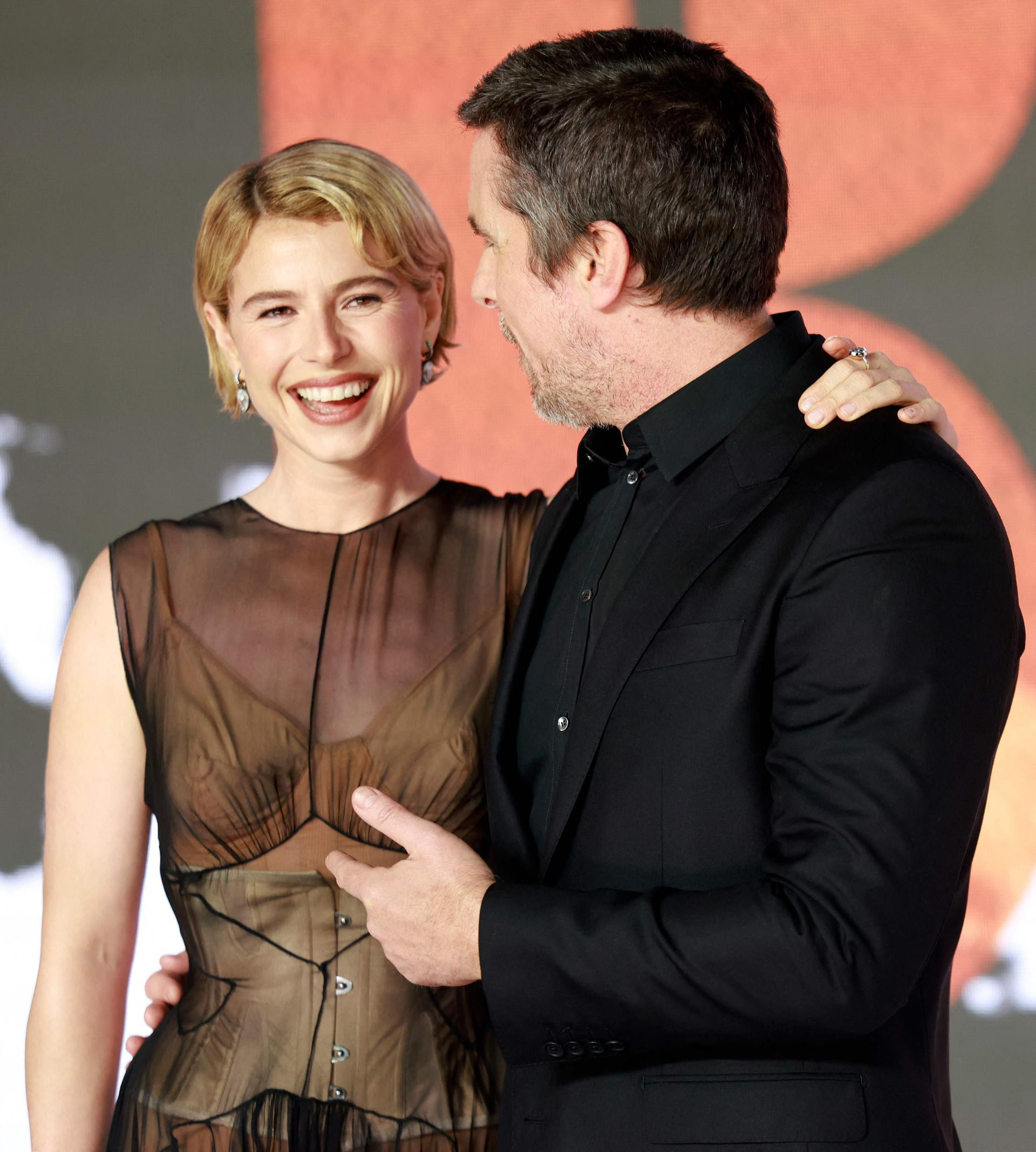 50-годишниот актер, кој во филмот го толкува ликот на Франкенштајн, позирал во целосно црно издание – црн костум и црна кошула, а модно се усогласил со сопругата.
