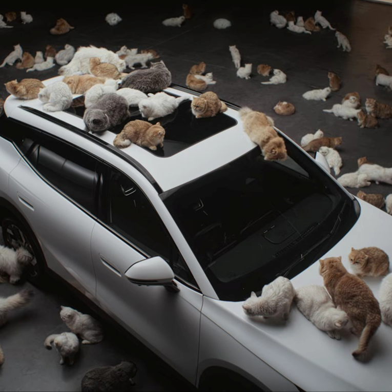 Кинескиот бренд користи десетици мачки за да укаже на посебните карактеристики на новиот модел.