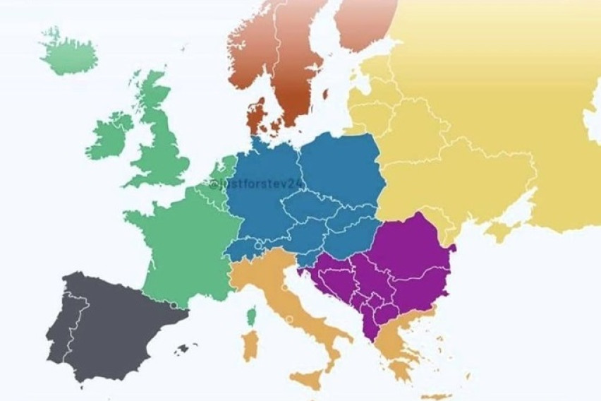 На Фејсбук профилот „WorldGeo“ се појави карта на Европа по региони и, секако, започна расправа за тоа дали Хрватска е во Југоисточна или во Средна Европа.