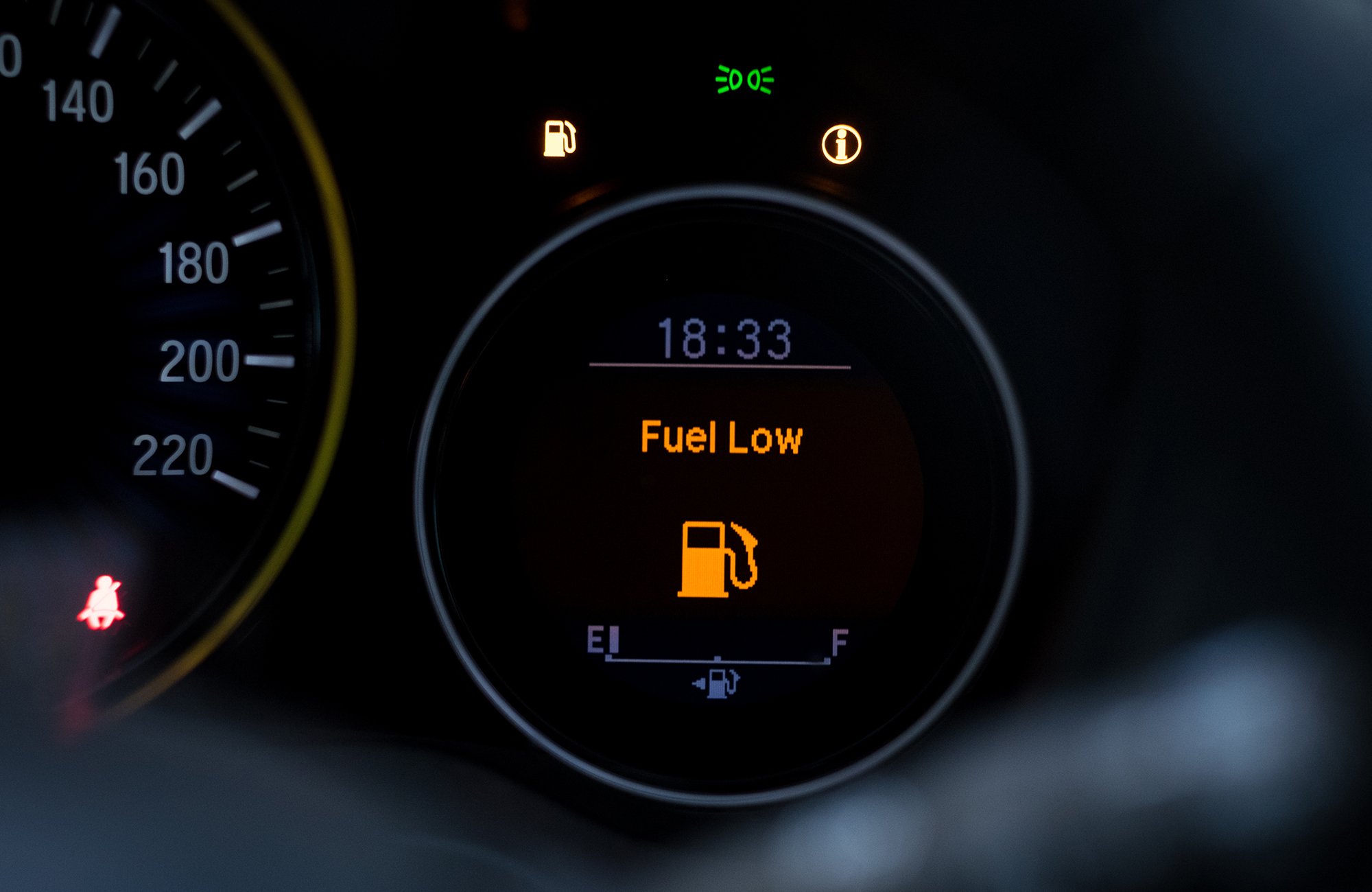 Кога на инструмент-таблата ќе се вклучи светлото за ниско ниво на гориво, тоа значи дека количината на гориво паднала под границата што ја одредил производителот. Таа граница е поставена така што на возачот му остава доволно „луфт“ за без паника да стигне до најблиската бензинска станица.
