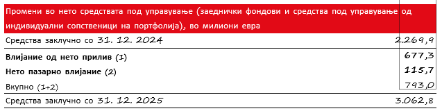 Вкупните средства под управување се зголемија за 6 проценти, на 6,3 милијарди евра.