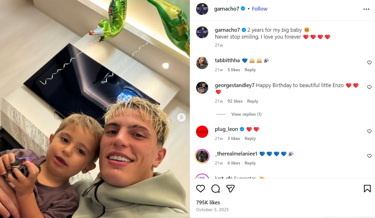 Потсетуваме, фудбалерот на Челси минатото лето се раздели од Ева Гарсија, мајката на неговиот двегодишен син Енцо. Тие беа заедно повеќе од четири години.