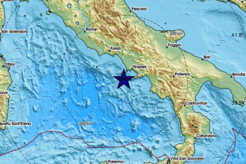 Земјотрес со јачина од 5,9 степени го погоди Тиренското Море покрај западниот брег на Италија, соопшти EMSC.