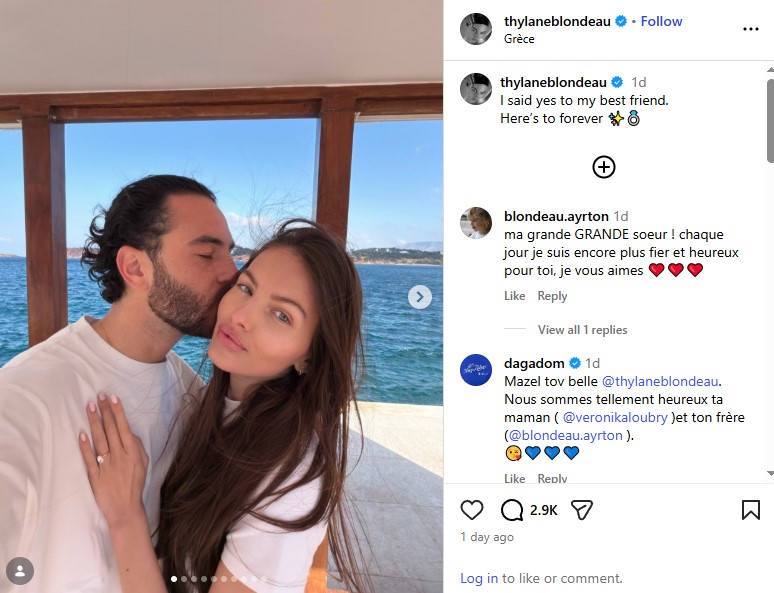 Французинката која денес има 24 години и сè уште фасцинира со својата убавина, неодамна ја објави оваа убава вест на Инстаграм, кога го покажа својот свршенички прстен со опис: „Му реков „да“ на мојот најдобар пријател. Засекогаш“.