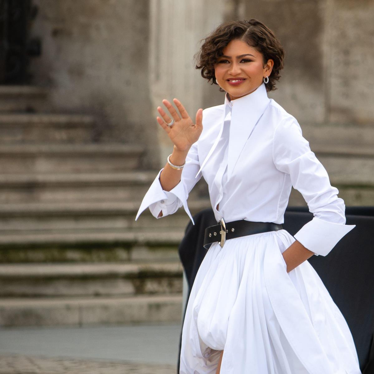 [ФОТО] Додека светот зборува дека тајно се венчала, Зендаја се појавила цела во бело: Актерката блесна на ревијата на „Луј Витон“