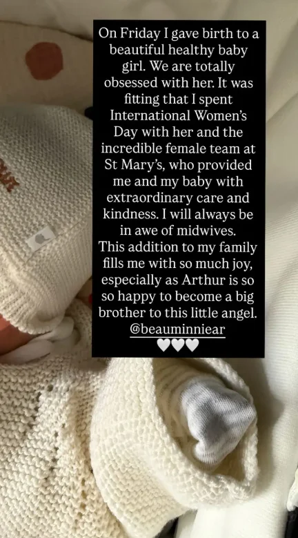 „Во петокот родив прекрасно девојче. Беше соодветно што Меѓународниот ден на жената го поминав со неа и со медицинскиот тим кој на мене и на моето бебе нѝ пружи посебна грижа и љубезност“, наведе таа.
