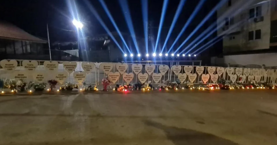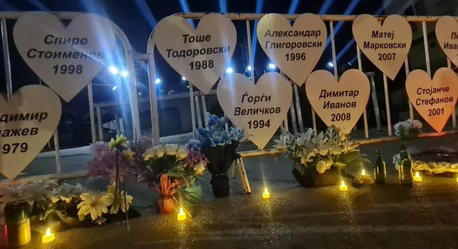Пред просторот каде што се наоѓаше дискотеката „Пулс“ во Кочани во денес (недела) беа поставени 63 срца со имињата на сите загинати во пожарот. Присутните родители, роднини, пријатели и многу други положија цвеќиња и запалија свеќи пред 63 срца.