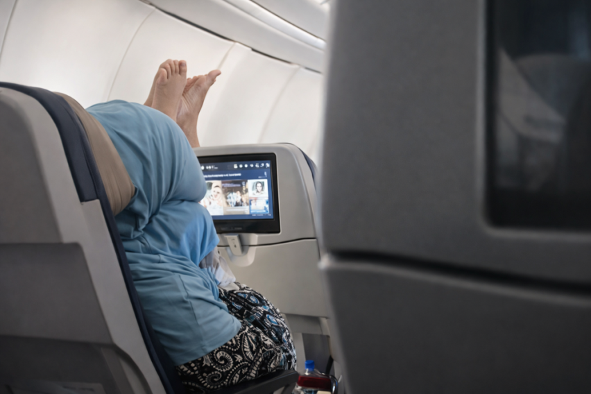 Една жена останала зачудена од необичното однесување на маж во текот на летот со авион. Сето тоа го снимила и го објавила на интернет, а видеото за кратко време предизвикало реакции и иницирало дебата за тоа како патниците треба да се однесуваат во авион.