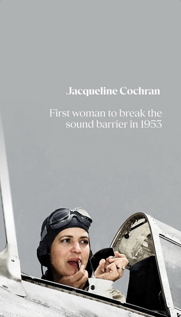Неколку децении подоцна, друга жена го оттурна хоризонтот уште подалеку. Жаклин Кокран, во 1953 година, стана првата жена која ја проби звучната бариера. Во авијацијата, како и во часовничарството, постојат моменти кога историјата се движи со огромна брзина. Кокран беше еден од тие моменти, жена која не се обидуваше да се вклопи во правилата на своето време, туку да ги помести.