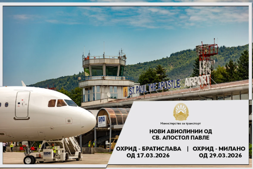 Николоски: Од денеска директна авиолинија Охрид-Братислава, а од 29 март нова авиолинија од Охрид до Милано