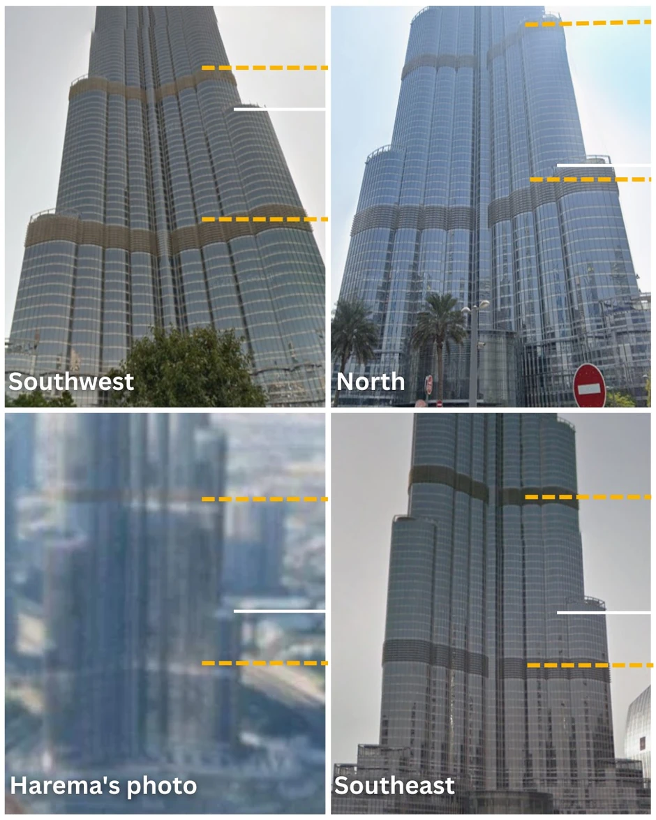За да се утврди дали фотографијата можела да биде направена претходно, анализирани биле снимки од „Google Street View“ од 2013 година наваму. Не било пронајдено никакво поклопување во распоредот на објектите околу Бурџ Калифа.