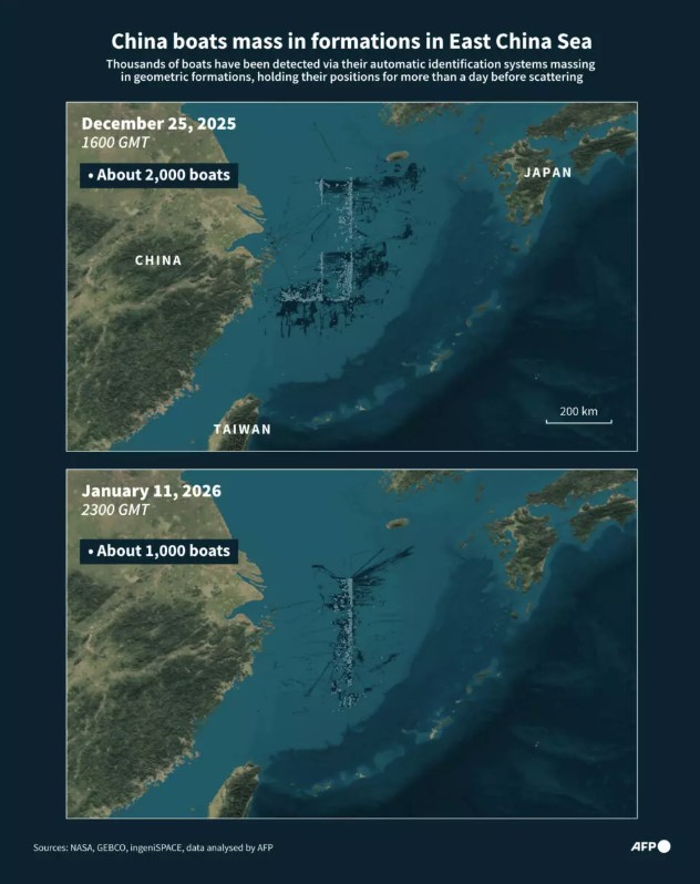 Три дена откако беа формирани рибарските бродови, Пекинг започна голема воена вежба наречена „Justice Mission 2025“, дизајнирана да вежба блокада на поморските пристапи кон Тајван. Заедно, маневрите беа демонстрација на способноста на Пекинг да координира цивилна и воена моќ.