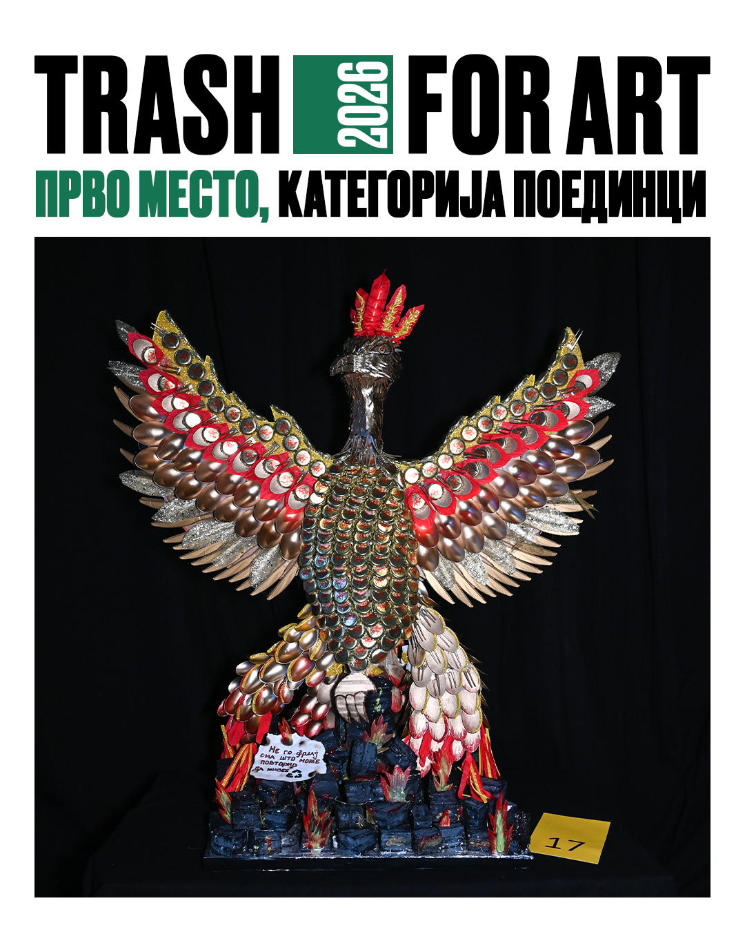 Организаторот Пакомак заедно со своите партнери, упатува искрени честитки до сите победници, како и благодарност до сите учесници за нивната посветеност, труд и инспиративни идеи. Со нивниот придонес, Trash for Art и оваа година прераснува во еко-свесна платформа што ги спојува уметноста, едукацијата и одржливоста.