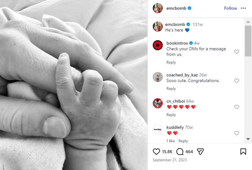 Сибом и Галагер ја споделија веста за раѓањето на Сампсон во септември 2023 година, само неколку месеци откако ја објавија и веста за свршувачката. Дека повеќе не се заедно, потврдија во ноември минатата година, а сега заедно го одгледуваат синот.